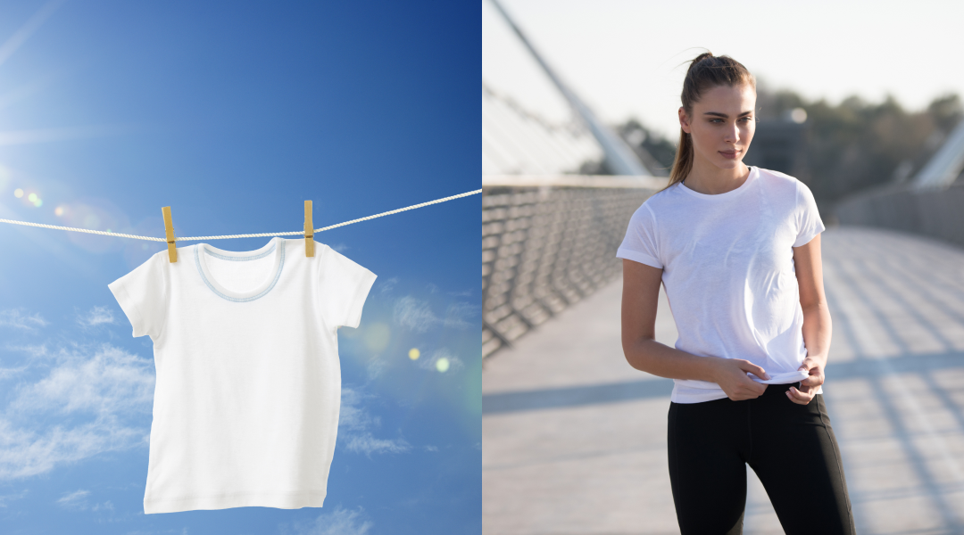 UVカット(紫外線遮断)機能を持ち合わせたドライアスレチックシリーズは水分の拡散性に大きく優れており、水を垂らすと1秒以内に拡散し大きく乾燥を助けます。水を生地中央に0.3ml滴下し、水分の拡散乾燥にともなう試験(拡散性残留水分率)では約60分で90%を乾燥。(綿100%商品の場合には約60分で30%の乾燥)。